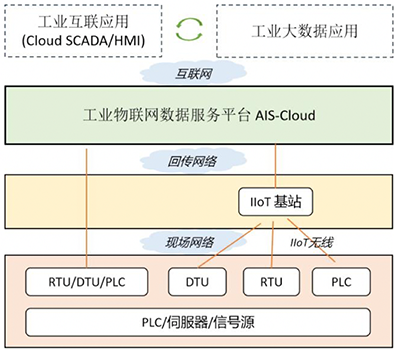 现场设备可以通过modbus TCP或OPC UA直连AIS-Cloud。无线设备可以通过基站中转,基站通过MQTT接入平台。参考艾森提供的工业物联网远距离通信RT-Chirp。